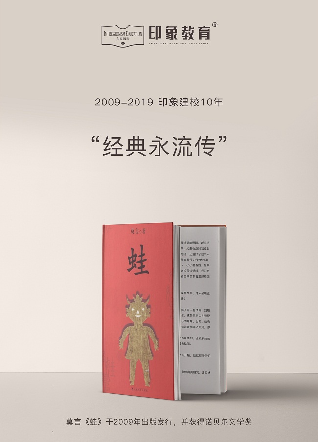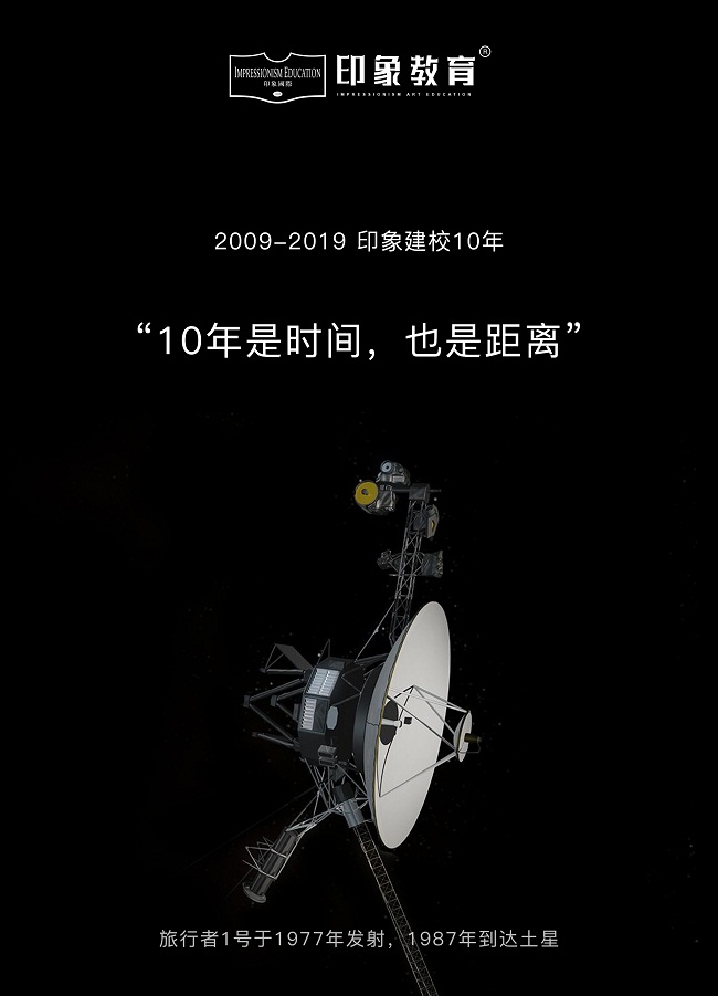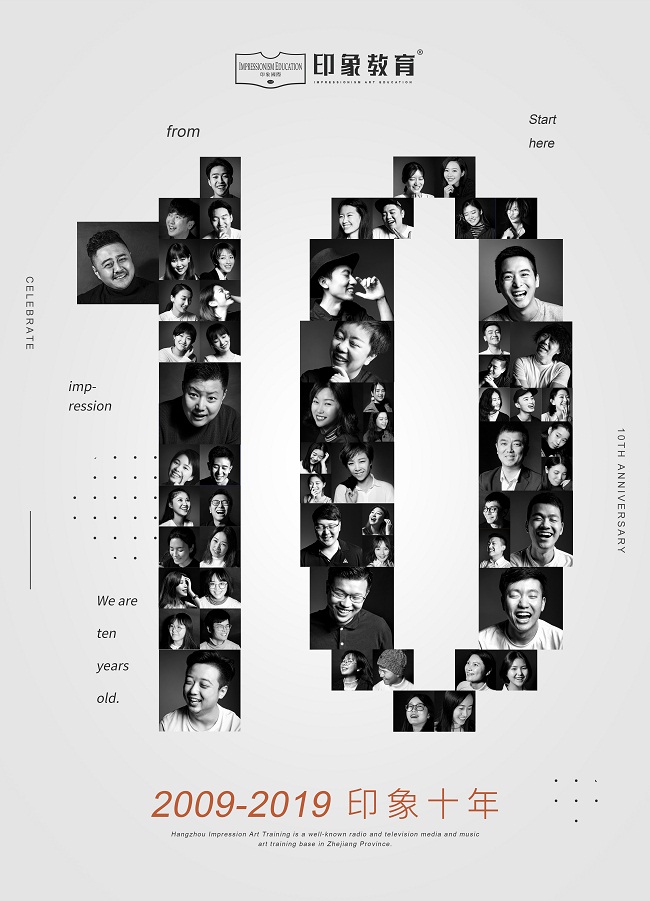 / 2009年,莫言酝酿十余年、笔耕四载、三易其稿,潜心写作一部触及国人灵魂最痛处的长篇力作《蛙》,并于同年获诺贝尔文学奖。 2009年,杭州印象教育成立。在大众文化生根茁壮,每个年轻人有理直气壮的选择时,马翔校长坚信:「艺术被款待的时代,才有了艺术教育的蓬勃」。 印象的十年,戒骄戒躁,终成一剑。国内著名教育投行和上市公司做出的内部资料,在影视传媒艺考领域,从成绩、规模、企业合规程度、企业健康程度等指数,已经高居同行业全国前三。 / 2009年,美国前总统奥巴马宣布从伊拉克撤军,自此伊拉克战争宣告结束 2009年,杭州印象教育成立。面对教育行业大洗牌,印象开掘出行业内的革命性气象,百舸争流,立在潮头。引得同行业争相模仿,但从未被超越过。 印象的十年,摒弃个人主义,推动企业化进程,一切步入正轨。秉持「体面人格、独立思想、自由精神」校训,稳步前进。 2009年,神奇少年贾马尔和印度电影《贫民窟的百万富翁》周进公众视野,极具民族特色的歌舞情节成了印度电影的标志性之一,该电影于同年一举夺得奥斯卡最佳电影奖。 2009年,杭州印象教育成立。就如同印度电影,创新、超越、并不断总结,得以辉煌发展。 印象的十年,可谓是成就了一段传奇。百分之百散生、百分之八十三口碑生源的记录。不兜售,不外出招生,不合作招生、不地推,好的坏的好看的难看的商业手段通通不适用。这种独一无二的「印象模式」,成为业界广泛关注的佳话。 / 2009年,微软Windows7系统发布,成为全球下载量最高的系统。 2009年,杭州印象教育成立。往届数据被一年一年不断刷新,每一个学年都有新惊喜。 印象的十年,我们见证了一整个年代。在这个年代的每一分钟里,印象都有故事:有人背下了五道文常,有人做好了一个长镜头赏析,有人默了一遍自我介绍,有人飚了一段高音。我们不断超越自我,改革创新,只因浮生未老,初心不忘。 / 10年。旅行者一号从地球跋涉上亿公里到达土星,并在接下来无穷尽的时间里,在无边际的的宇宙中,独自前行。 10年,杭州印象教育从二十人的巴士小车,到六七百人的浩荡大军,这一路,走得很远。 印象的十年,这一段岁月是远的,我们走过了三千六百五十二个日夜;这一段路程却也是近的,从印象的传媒校区到音表校区,其实也只有一个红绿灯的距离。但无论是远还是近,这一路,星霜屡变,严寒酷暑,我们从未停下脚步。